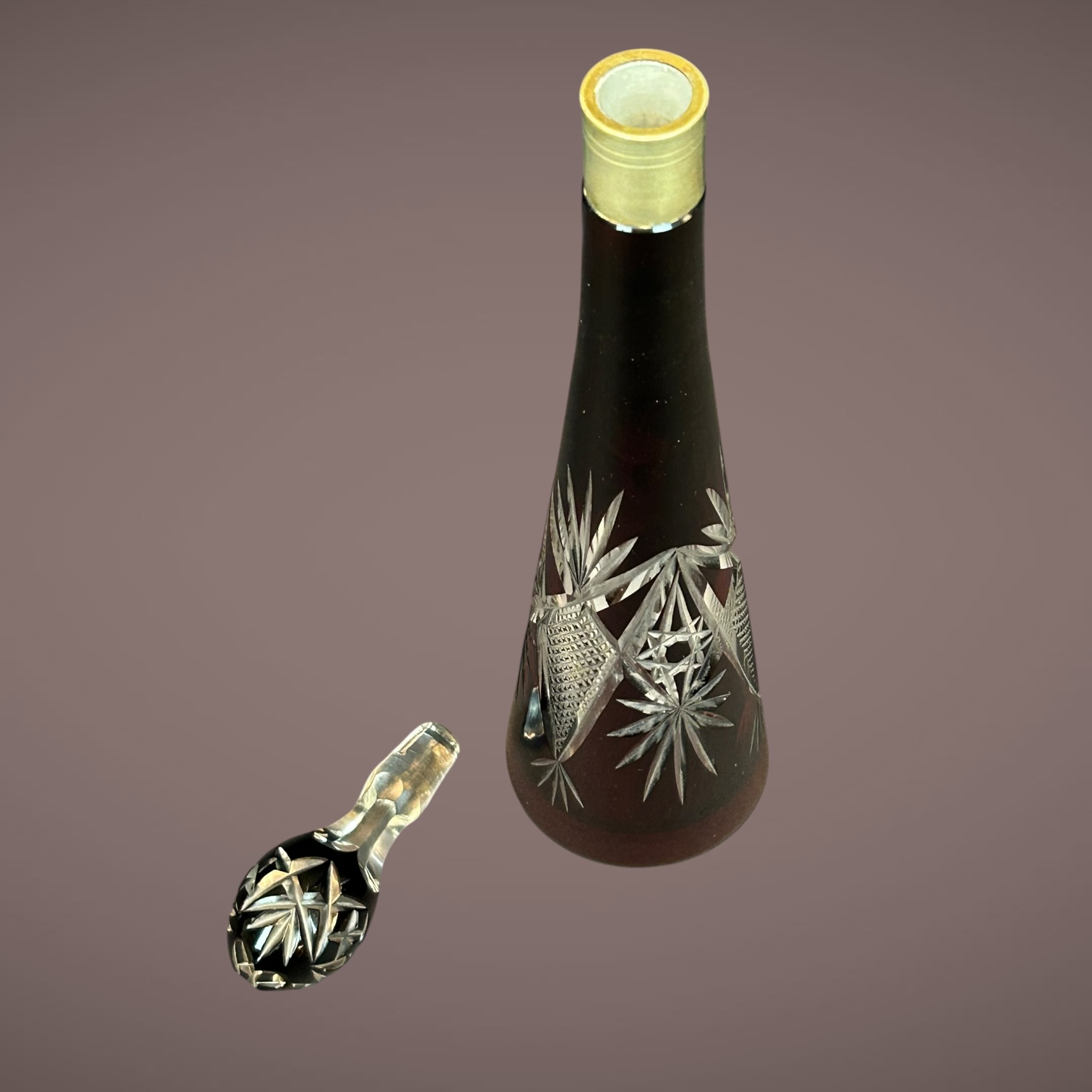 Carafe en cristal taillé rouge rubis avec bouchon
