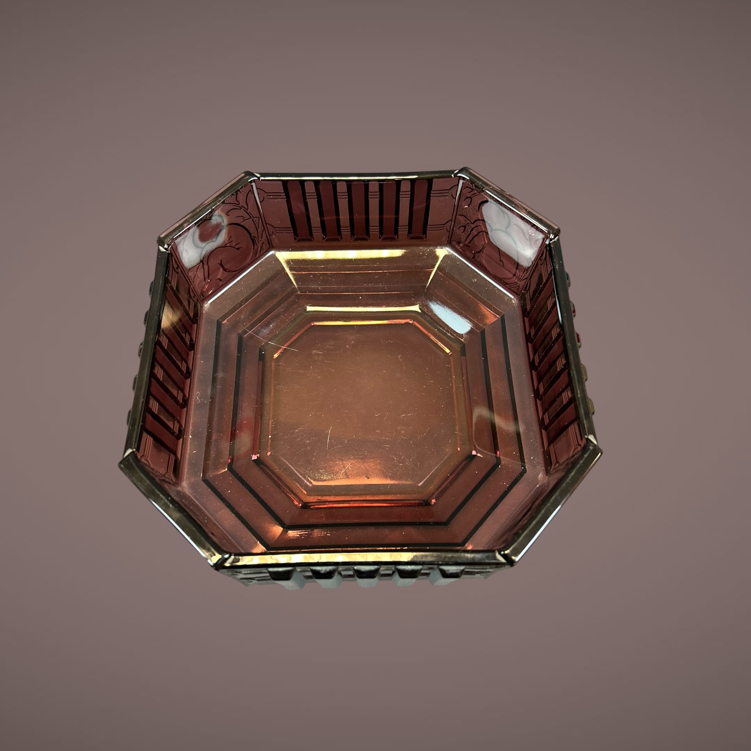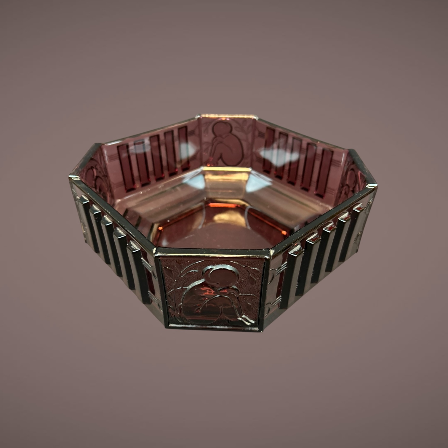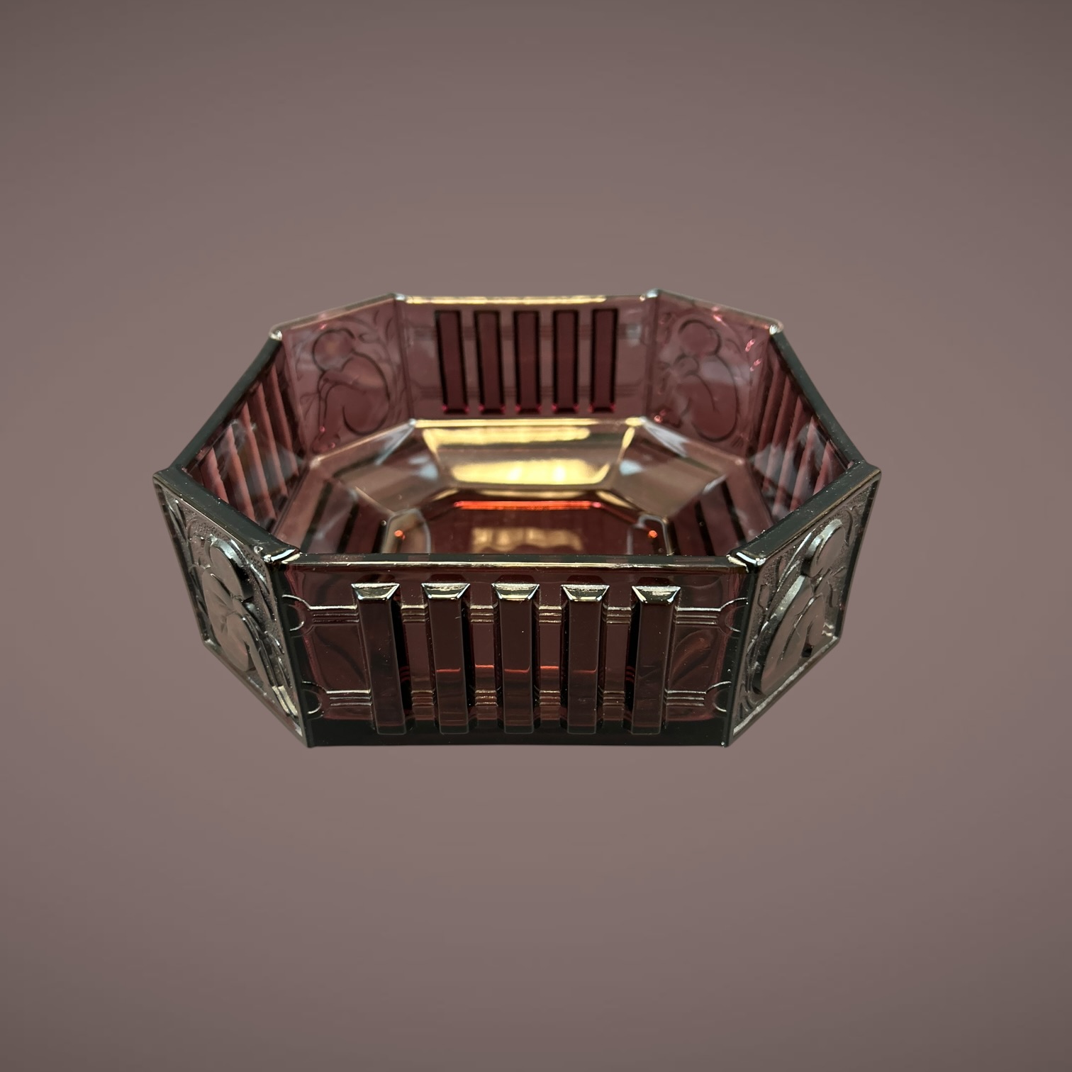 Coupe octogonale en verre améthyste gravé Val Saint-Lambert – centre de table vintage