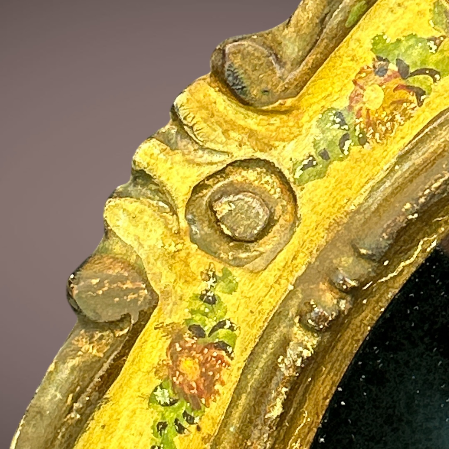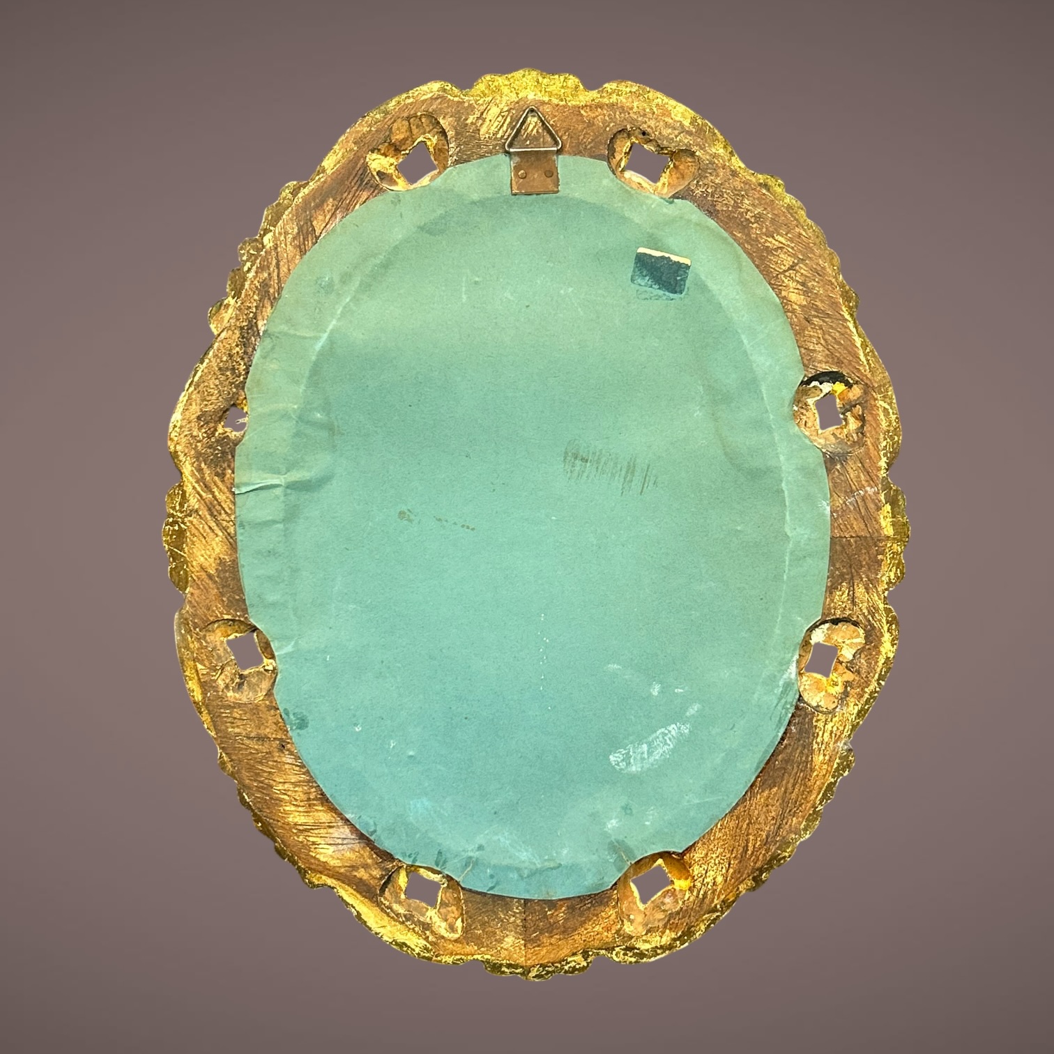 Miroir ancien ovale bois sculpté polychrome style rocaille XXe