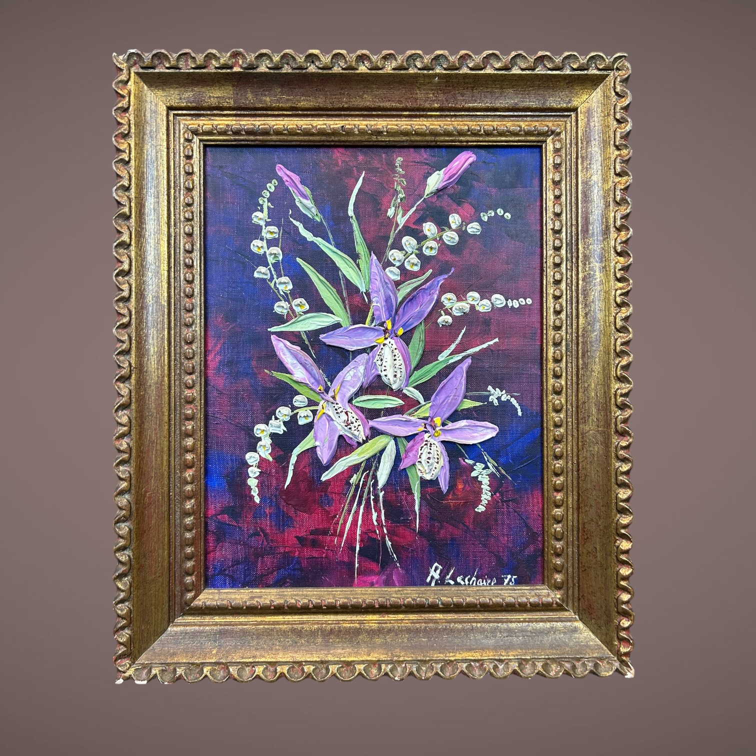 Peinture au couteau bouquet de fleurs Adrien Lechaire 1975
